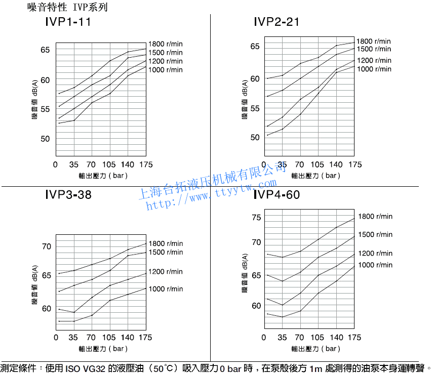 轉(zhuǎn)數(shù)(r/min)法蘭型 腳座型 IVP1 2 7.5 138 157 1800 138 1200 138 1200 600 18 23.4 3 10.2 4 12.8 172 207 172 5 16.7 6 19.2 7 22.9 8 26.2 10 31.0 11 35.0 12 37.9 157 157 157 14 44.2 138 138 138 IVP2 10 32.5 172 207 1800 172 1200 138 1200 600 26.7 35.4 12 38.3 14 43.3 15 46.7 17 52.5 19 59.2 21 65.0 25 78.6 138 157 157 IVP3 17 53.3 172 207 1800 172 1200 138 1200 600 36.9 45.6 21 66.7 25 79.2 30 95.0 32 100 35 109 38 118 42 134 138 157 157 IVP4 30 96.0 172 207 1800 172 1200 138 1200 600 68.9 94.8 35 109 38 128 42 134 50 156 60 189 67 210 157 172 157 75 236 138 157 備注:●代號是在1200r/min和6.9bar下的額定容量US gpm。?記號,允許0.5秒以內(nèi),超過"最高使用壓力"10%的瞬間(尖峰)壓力。