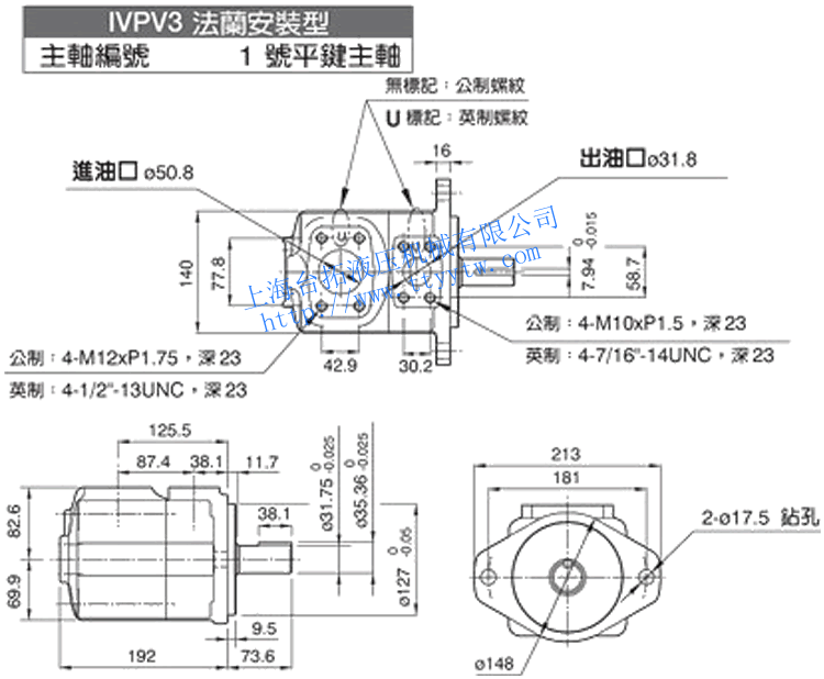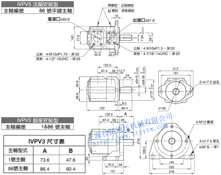 (86號(hào)平鍵主軸/1&86號(hào)主軸)尺寸圖下載 子母葉片定量泵IVPV3(11號(hào)花鍵主軸)尺寸圖下載
